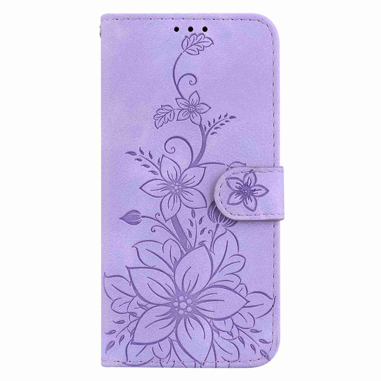Estuche para Teléfono LG K52 K62 Q52 Cuero con Relieve de Lirio (Púrpura)