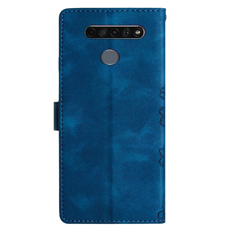 Funda para LG K61 Cherry Blossom Butterfly Skin Feel de PU en Relieve (Azul)