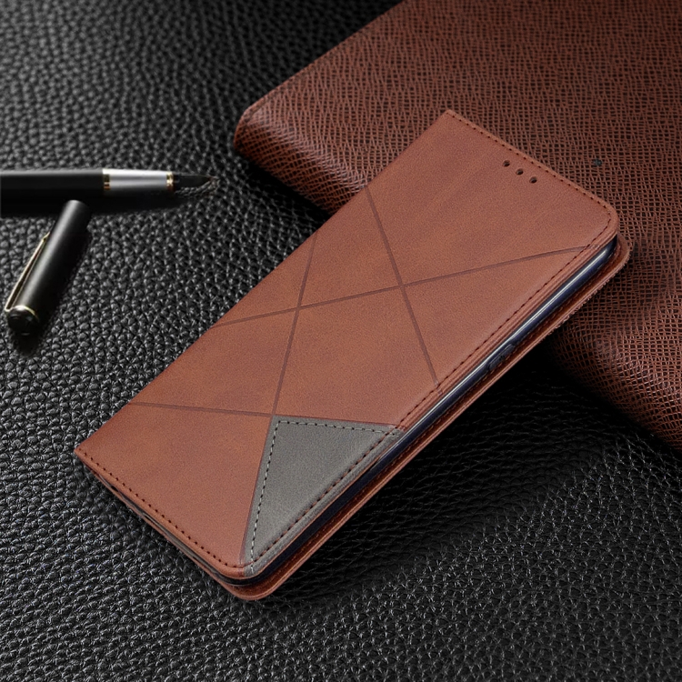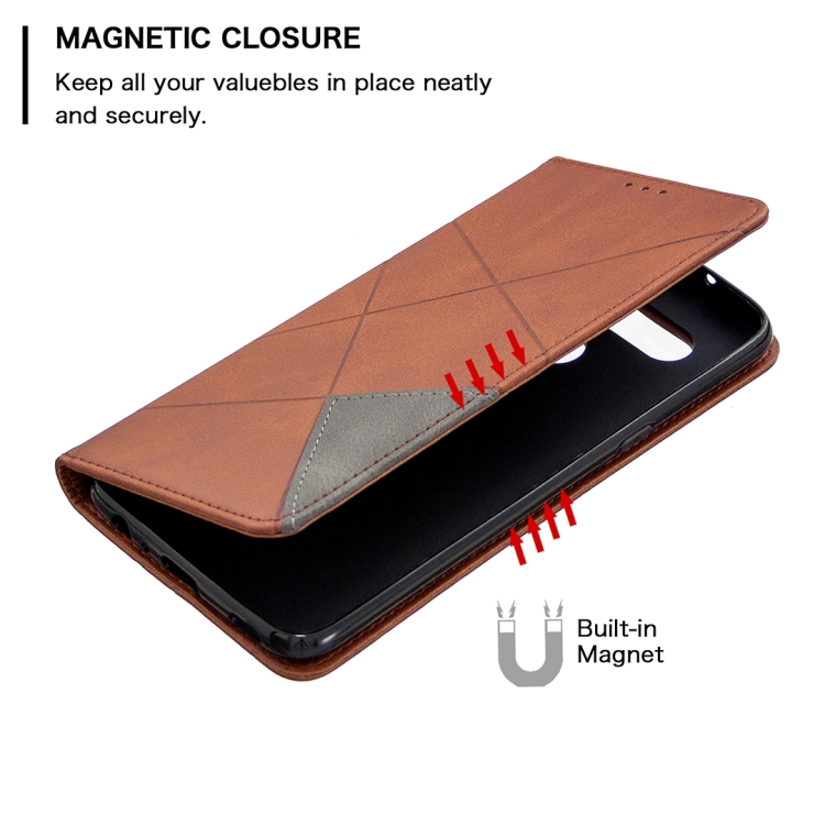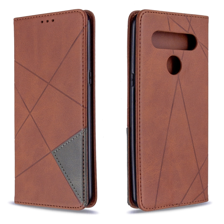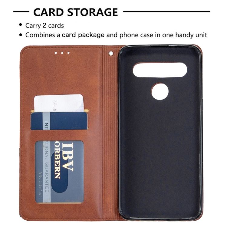 Estuche de Cuero Magnético para LG K61 con Tapa Horizontal, Soporte, Ranuras para Tarjetas y Billetera (Marrón)