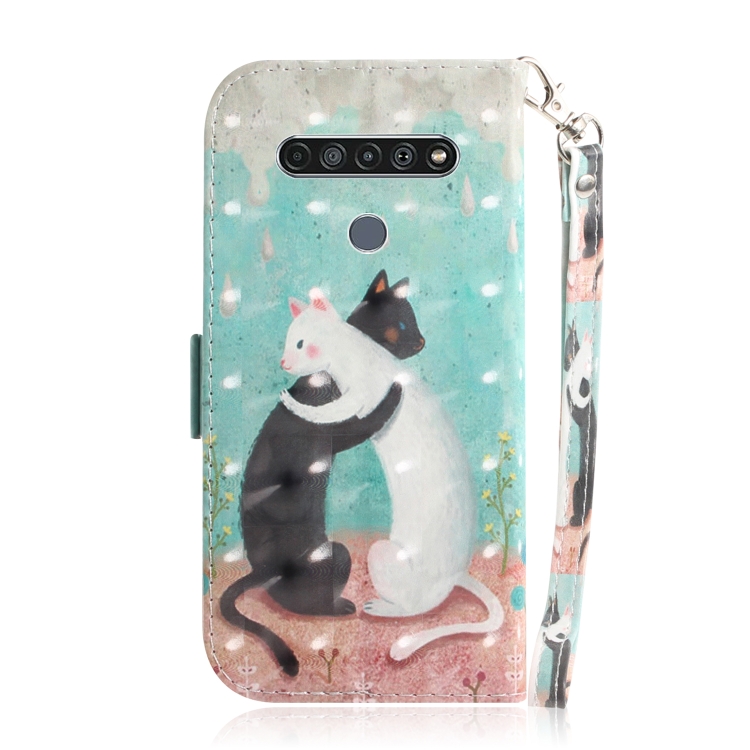 Funda de Cuero Abatible Horizontal para LG K61 con Dibujo 3D, Soporte, Ranuras y Cordón