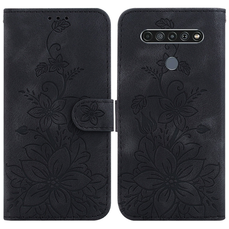 Funda de Cuero con Relieve Lily para LG K61 (Negro)