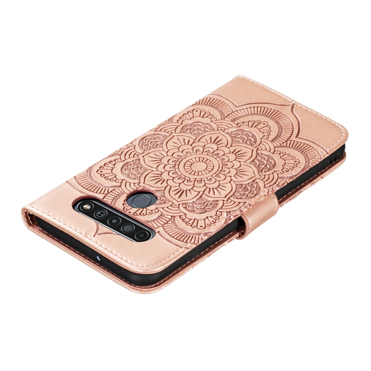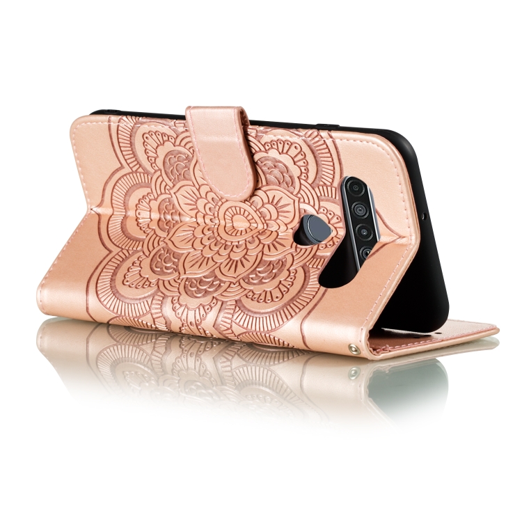 Estuche de Cuero PU para LG K61 Mandala con Tapa Horizontal, Soporte, Ranuras para Tarjetas y Billetera (Oro Rosa)