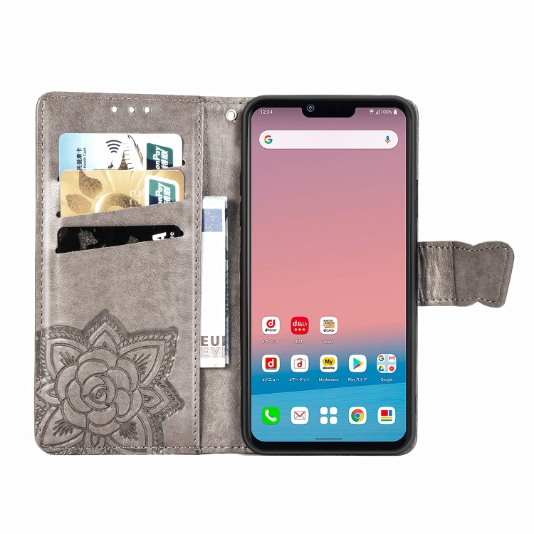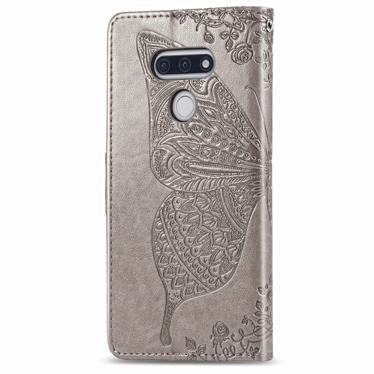 Funda de Cuero para LG Style3 L-41A Butterfly Love Flower con Tapa Horizontal, Soporte, Ranura para Tarjeta y Cordón (Gris)