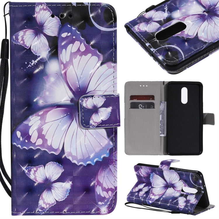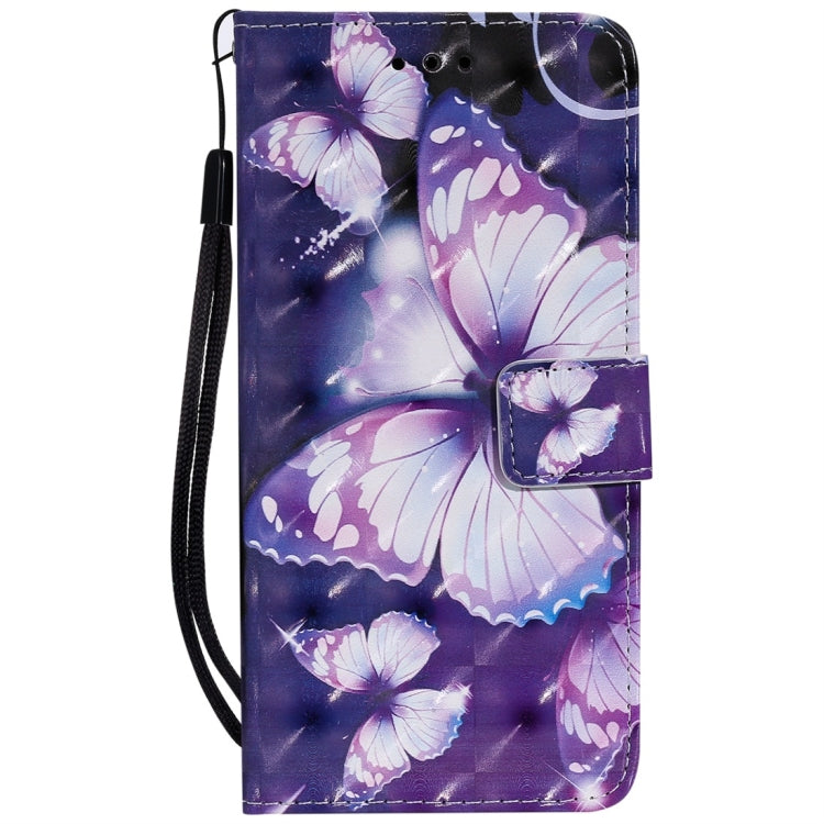 Funda de Cuero para LG Stylo 5 con Tapa Horizontal, Patrón 3D, Billetera, Soporte, Ranuras y Cordón (Mariposa Morada)