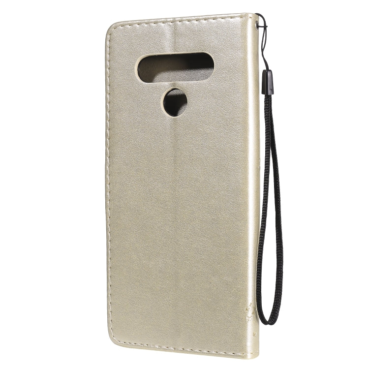 Funda de Cuero para LG Stylo 6 con Tapa Horizontal, Patrón Árbol y Gato, Soporte, Ranuras y Cordón (Dorado)