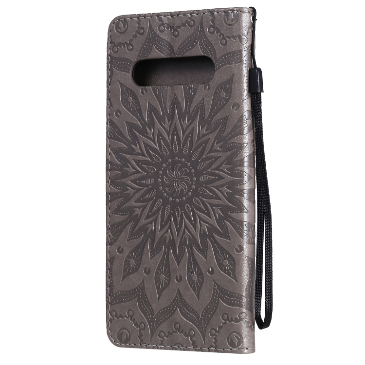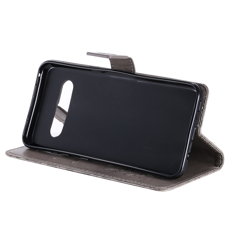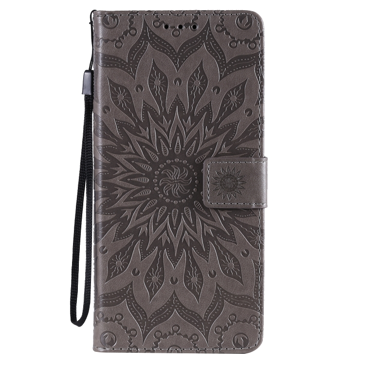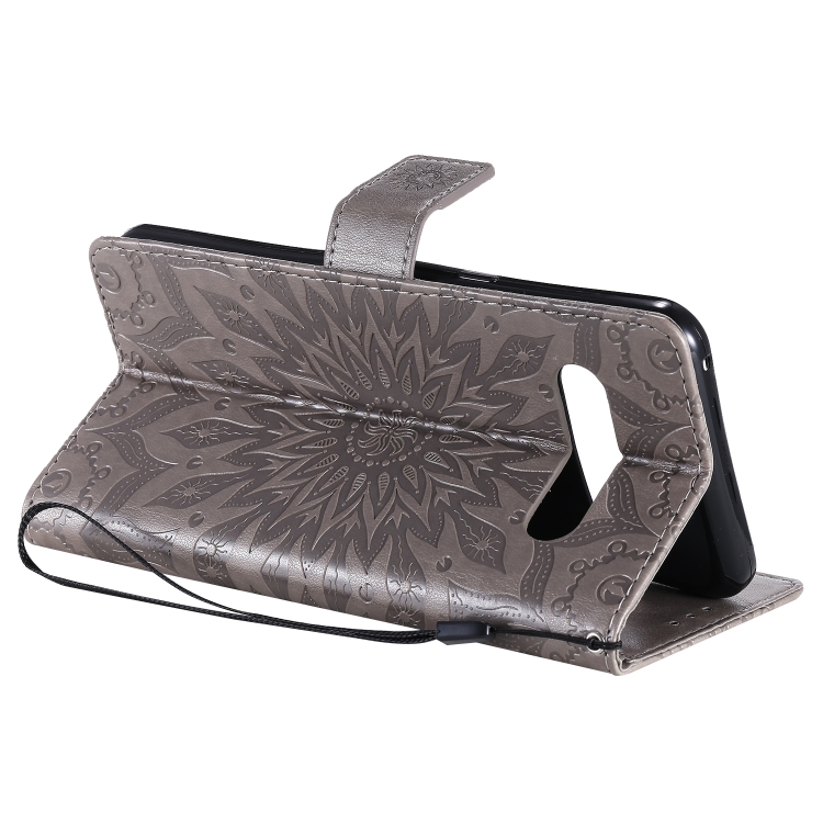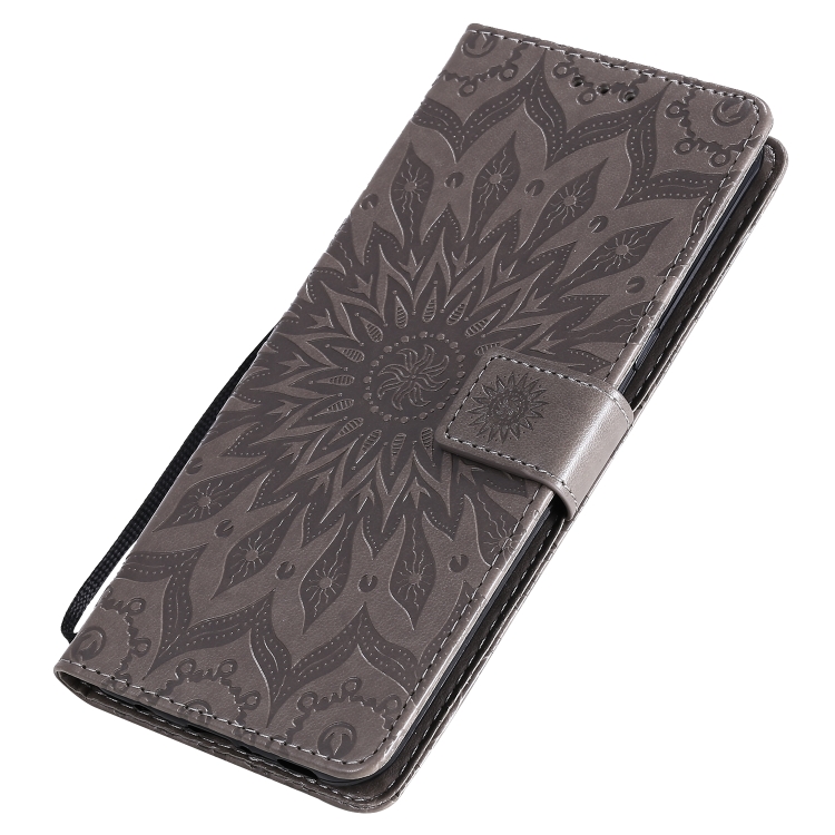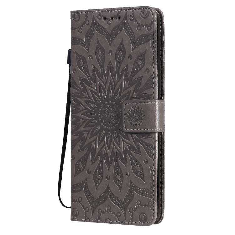 Funda Cuero Pu LG V60 Thinq 5G con Diseño Girasol, Soporte, Ranuras y Cordón (Gris)