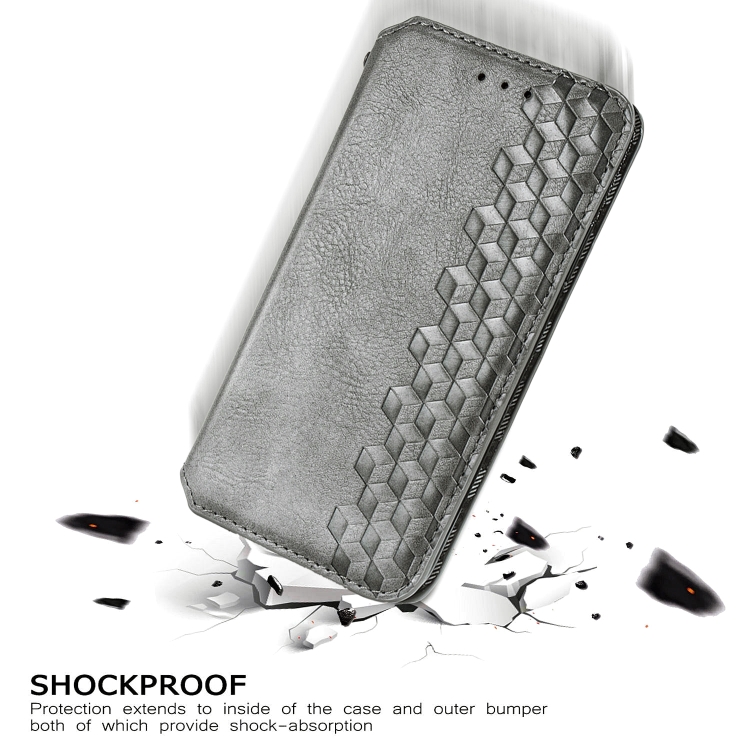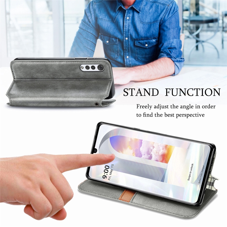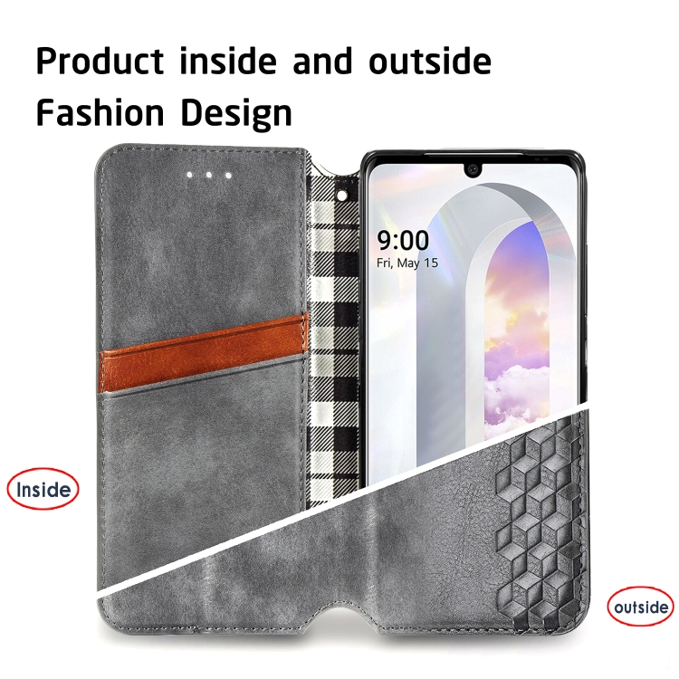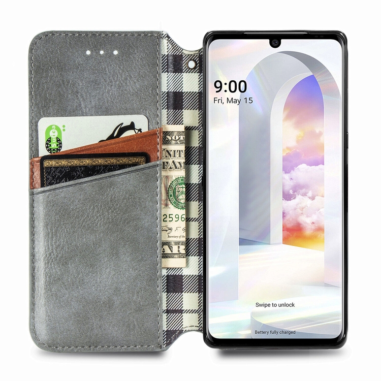 Estuche de Cuero PU para LG Velvet 5G Cubic Grid con Tapa Horizontal, Soporte y Billetera (Gris)