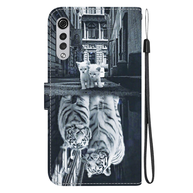 Estuche de Cuero para LG Velvet / G9 con Dibujo Coloreado y Textura de Cristal (Reflejo de Tigre Gato)