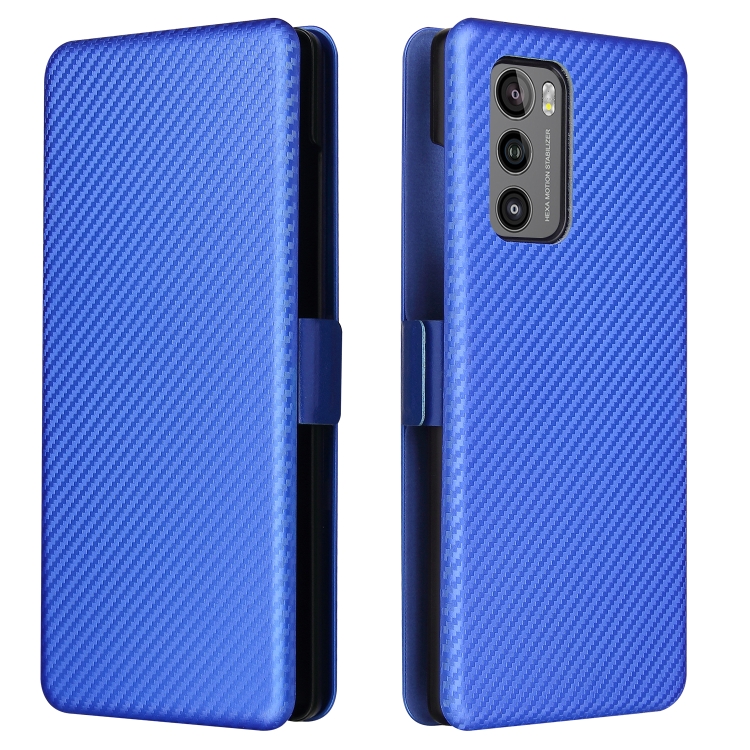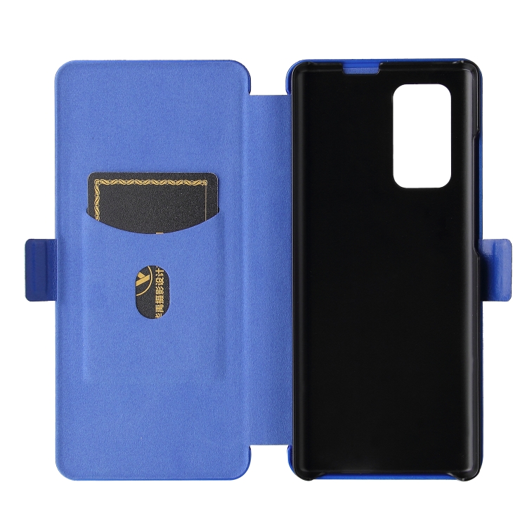 Funda para LG Wing 5G con Hebilla Textura Fibra de Carbono Flip Magnético TPU PC Cuero Pu Ranura (Azul)