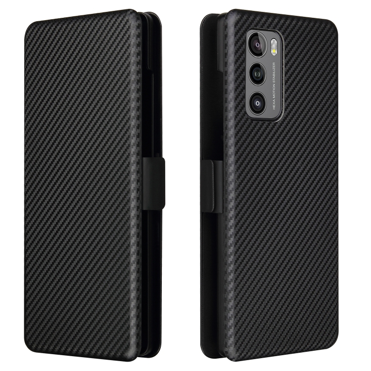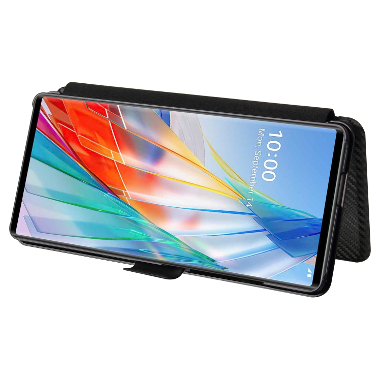 Funda para LG Wing 5G con Hebilla Textura Fibra de Carbono Flip Magnético TPU + PC Cuero Pu Ranura Tarjeta (Negro)
