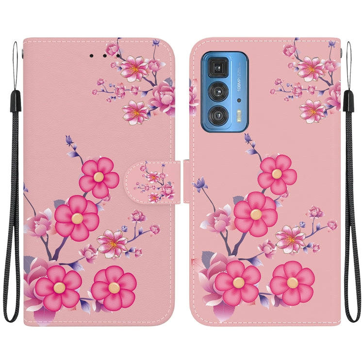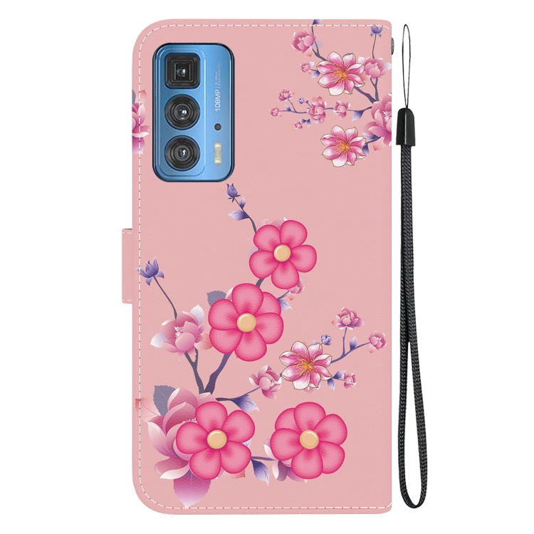 Funda de Cuero para Motorola Edge 20 Pro con Dibujo Coloreado y Textura de Cristal (Flores de Cerezo)