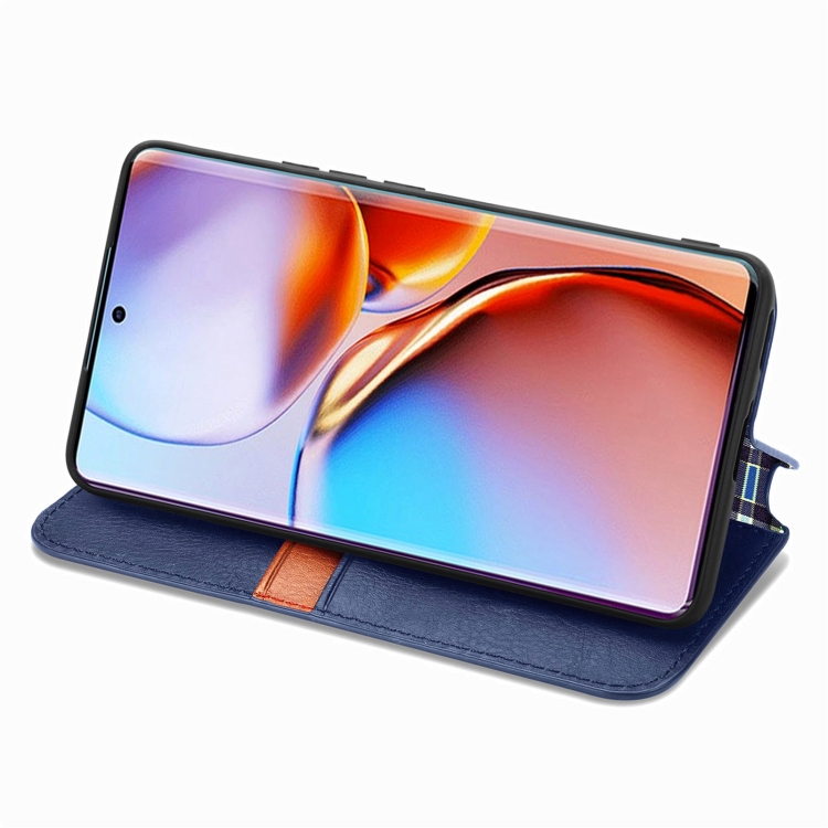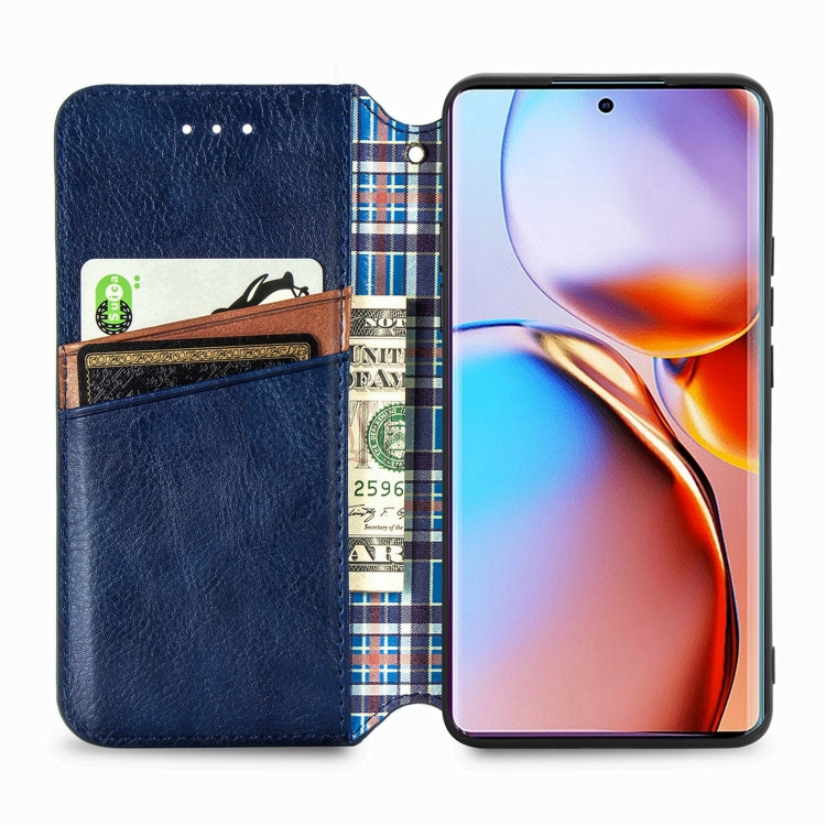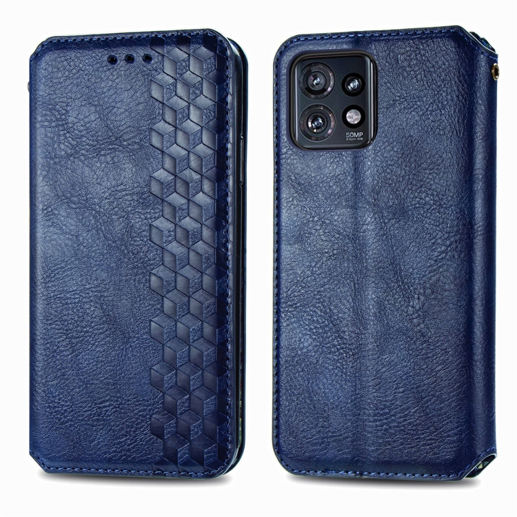 Funda para Motorola Edge 40 Pro Cubic Grid Cuero Magnético Prensado (Azul)