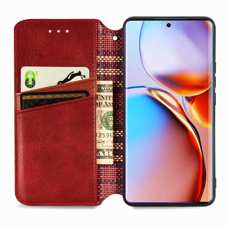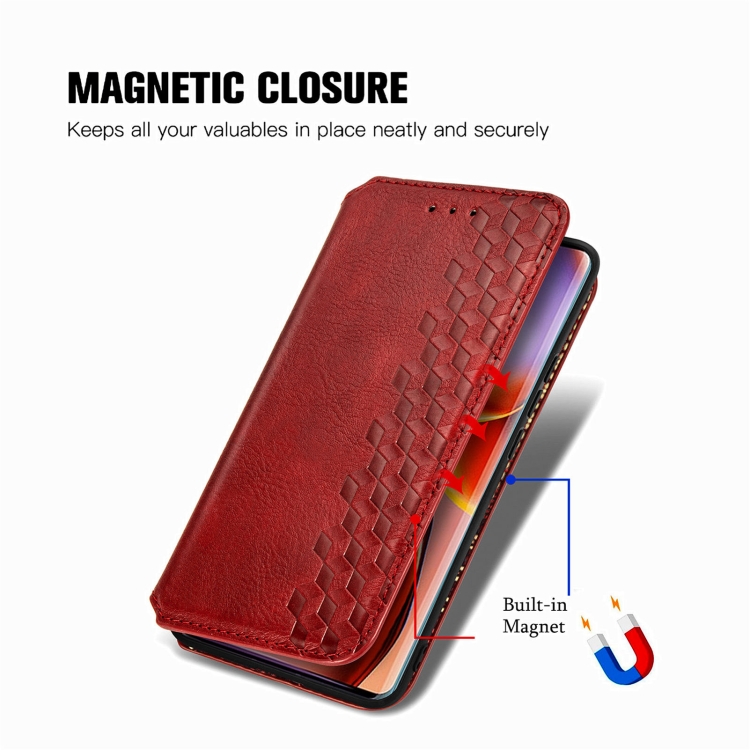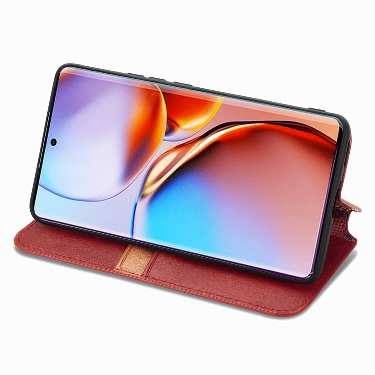 Funda para Motorola Edge 40 Pro Cubic Grid Cuero Magnético Prensado (Rojo)