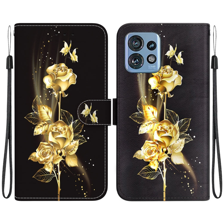 Funda de Cuero para Motorola Edge 40 Pro con Dibujo Coloreado y Textura de Cristal (Mariposa Dorada Rosa)