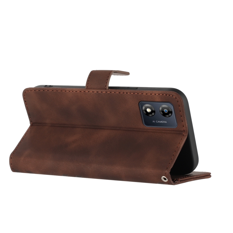 Funda de Cuero para Motorola Moto E13 con Diseño Line Pattern y Textura Skin Feel (Café)