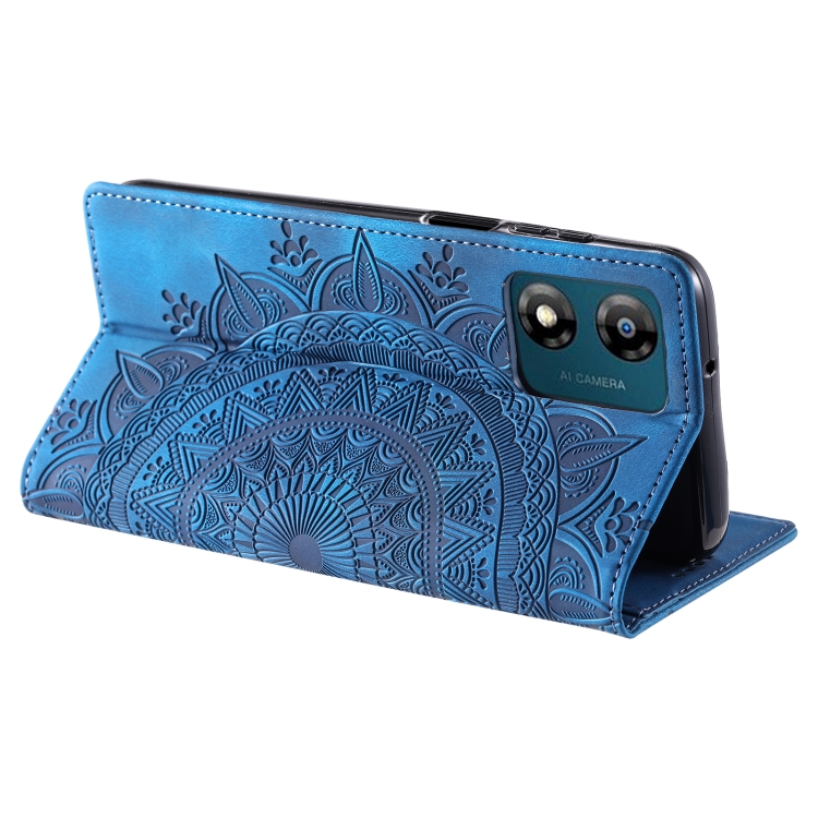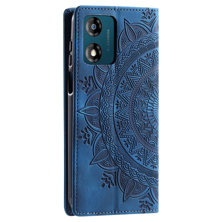 Funda de Cuero Magnética en Relieve para Motorola Moto E13 Totem (Azul)