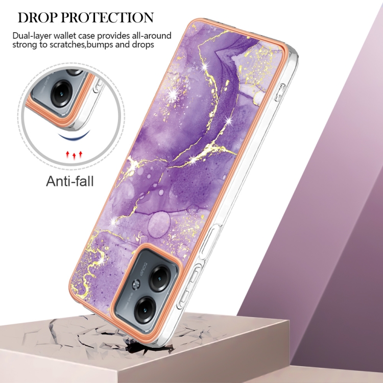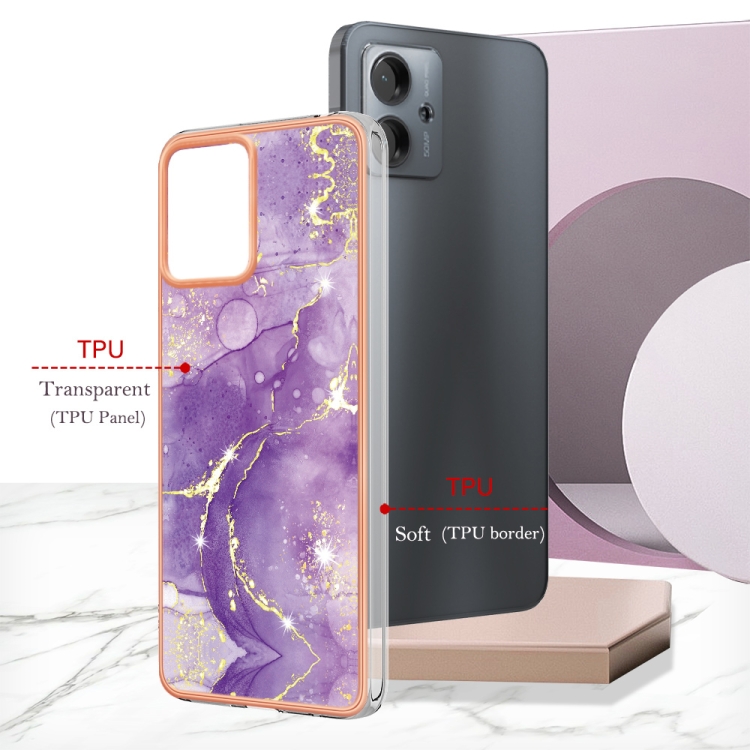 Estuche para Motorola Moto G14 Imd Doble Cara Mármol Galvanizado (Púrpura)