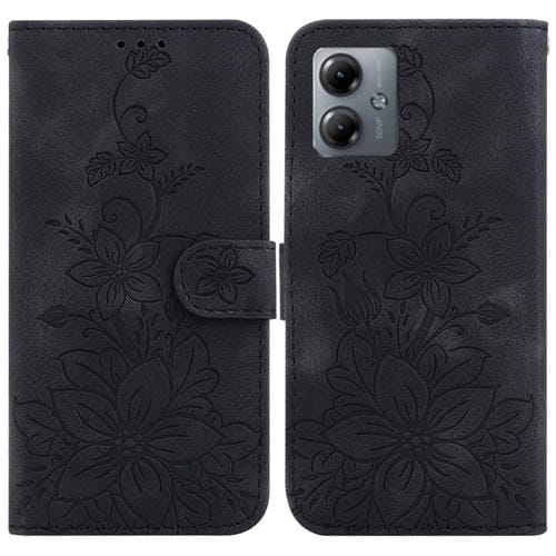 Funda para Motorola Moto G14 Lily de Cuero en Relieve (Negro)