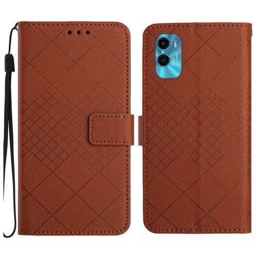 Funda para Motorola Moto G22 4G y E22S 4G Cuero con Textura de Rejilla Rómbica (Marrón)