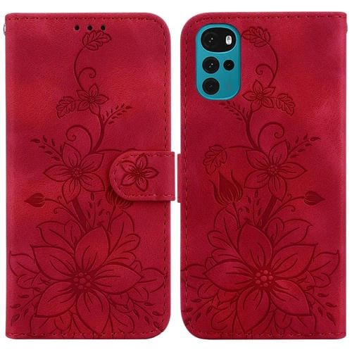 Funda para Motorola Moto G22 Lily de Cuero en Relieve (Rojo)