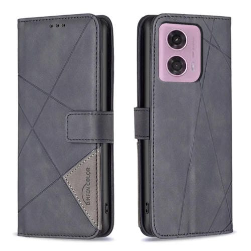 Funda para Motorola Moto G24 de Cuero con Textura de Rombo y Hebilla Magnética (Negro)
