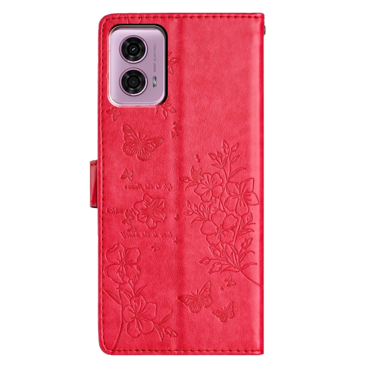 Funda de Cuero para Motorola Moto G34 con Mariposas y Flores (Rojo)
