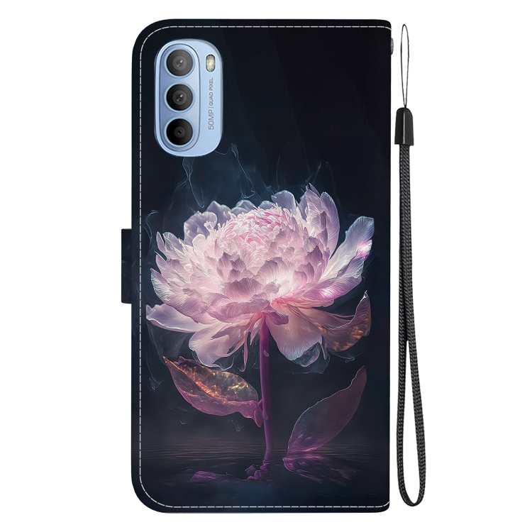Funda de Cuero para Motorola Moto G51 con Dibujo Coloreado y Textura de Cristal (Peonía Púrpura)