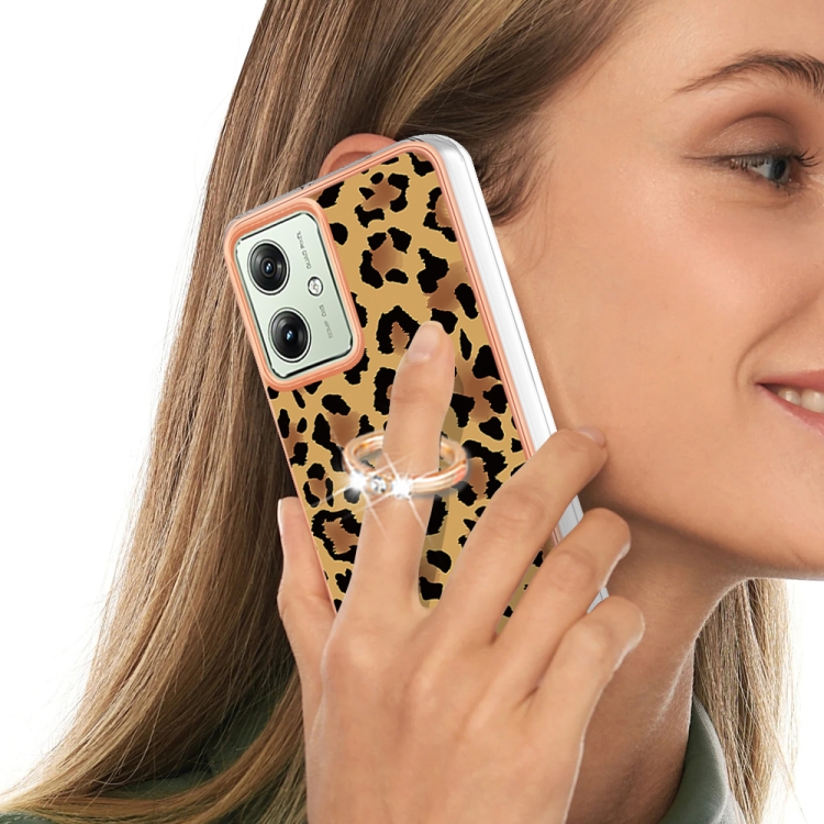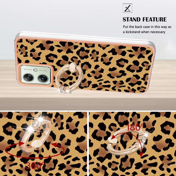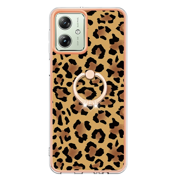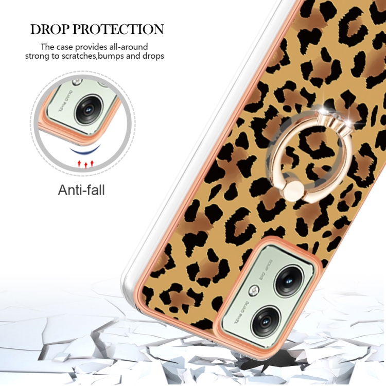 Estuche para Motorola Moto G54 IMD Doble Cara con Galvanoplastia y Soporte para Anillo (Leopardo)