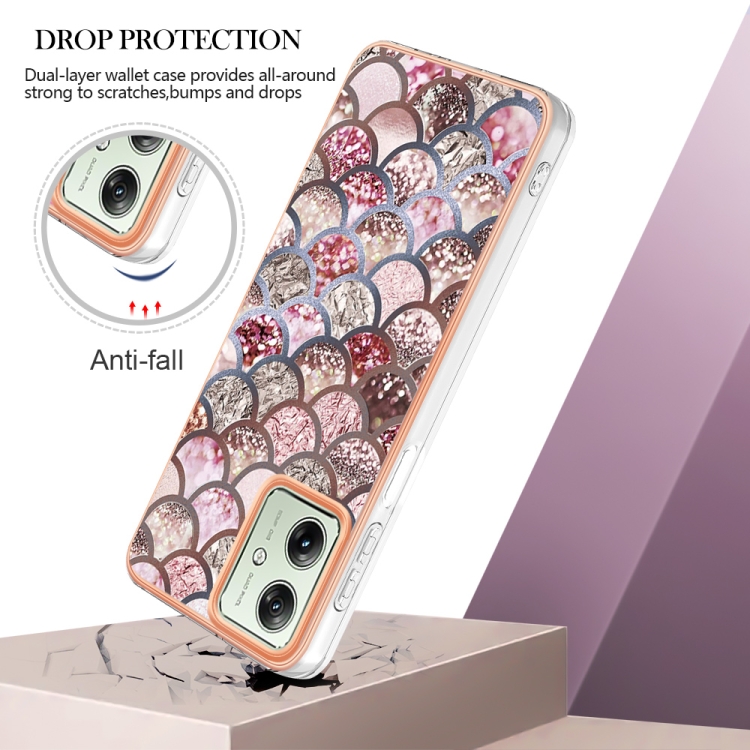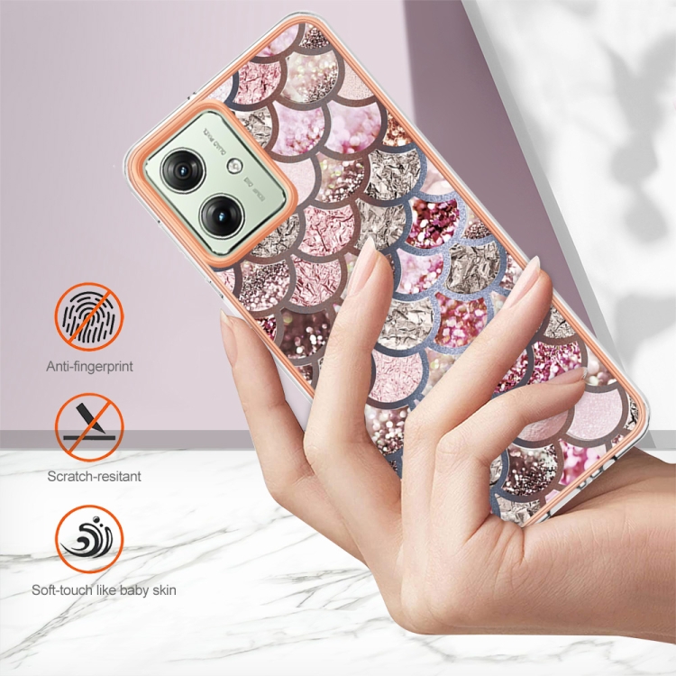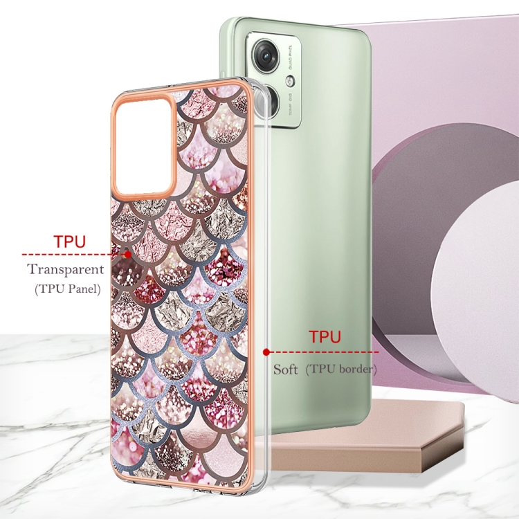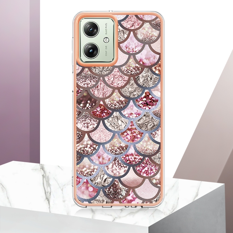 - 1x Estuche para Motorola Moto G54 TPU con Galvanoplastia Escamas Rosadas