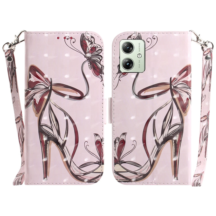 Funda para Motorola Moto G54 de Cuero con Tapa Horizontal y Diseño 3D Mariposa de Tacón Alto (Color)