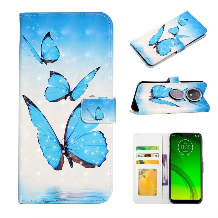 Funda de Cuero para Motorola Moto G7 Power con Dibujo 3D en Relieve (3 Mariposas)