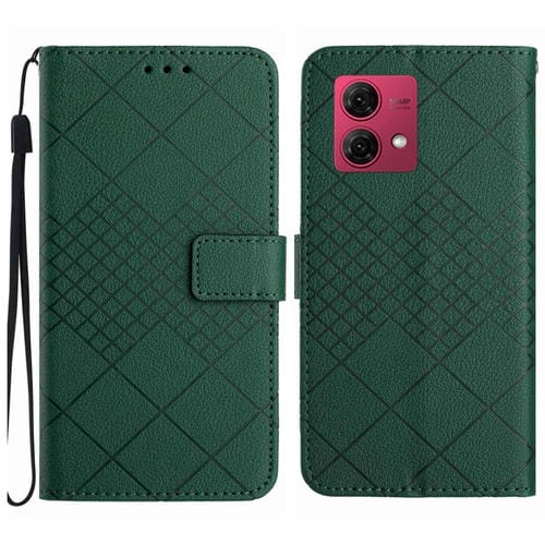 Funda de Cuero para Motorola Moto G84 5G con Textura de Rejilla Rómbica (Verde)