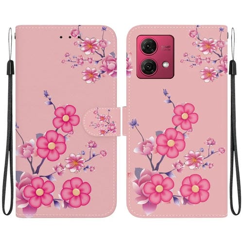 - 1x Estuche de Cuero para Motorola Moto G84 con Dibujo Coloreado y Textura de Cristal (Flores de Cerezo)