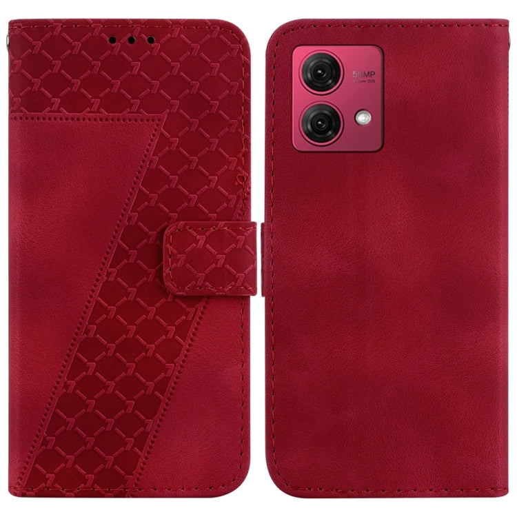 Funda de Cuero para Motorola Moto G84 con Relieve en Forma de 7 (Rojo)