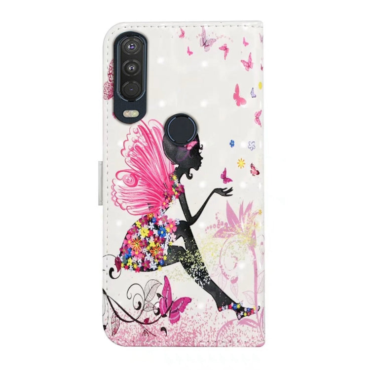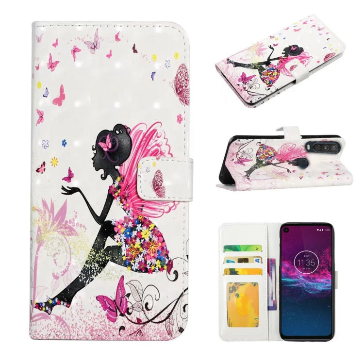 Funda de Cuero para Motorola One Action con Dibujo 3D en Relieve al Óleo (Hada de Flores)