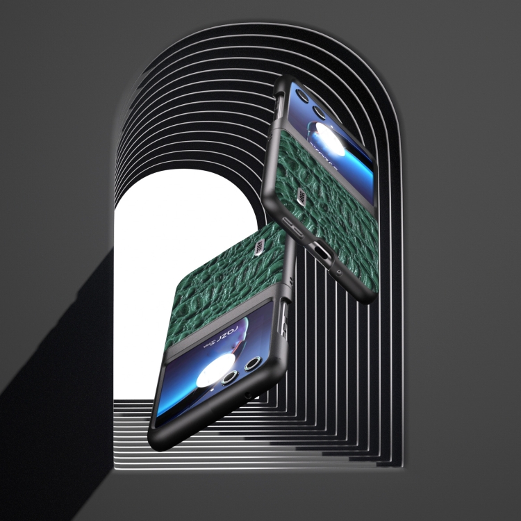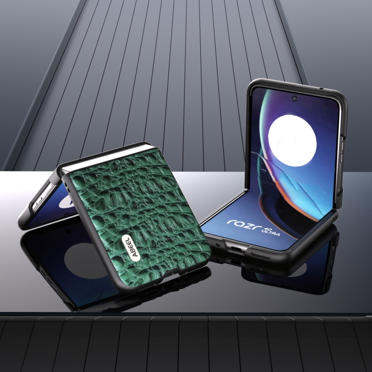 Funda para Motorola Razr 40 Ultra Abeel con Borde Negro y Dosel de Cuero Genuino (Verde)