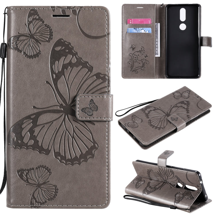 Para Nokia 2.4 3D Mariposas en relieve Patrón Horizontal Flip Funda de cuero con soporte, ranura para tarjeta y billetera (gris)