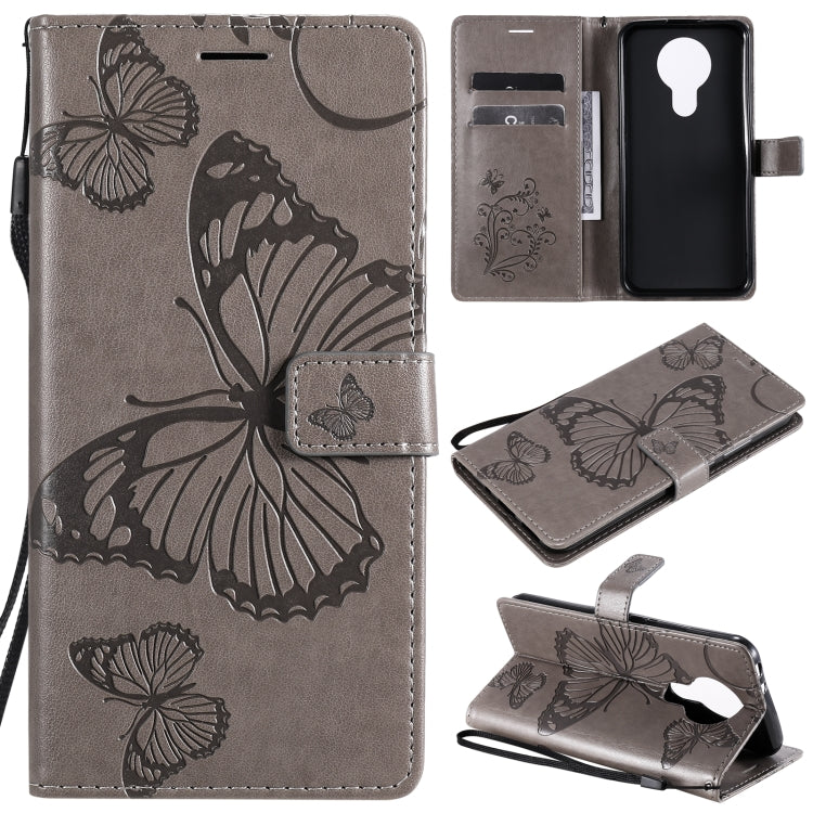 Para Nokia 3.4 Estuche de cuero con tapa horizontal con estampado de mariposas en 3D con soporte, ranura para tarjeta y billetera (gris)