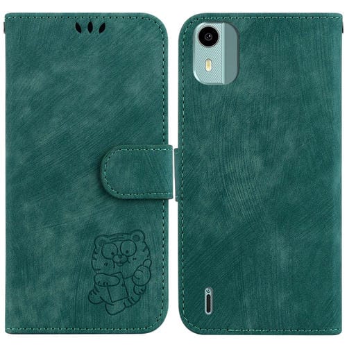 Funda de Cuero para Nokia C12 Little Tiger en Relieve (Verde)