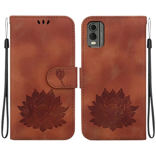 Funda de Cuero en Relieve para Teléfono Nokia C32 Lotus (Marrón)