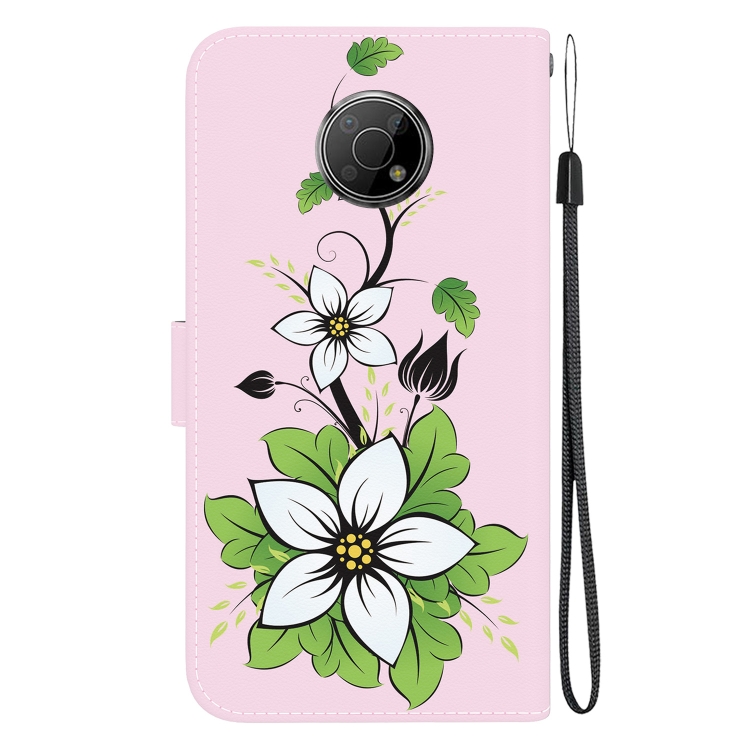 Funda de Cuero para Nokia G300 con Dibujo Coloreado y Textura de Cristal (Lirio)