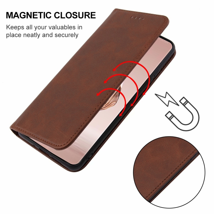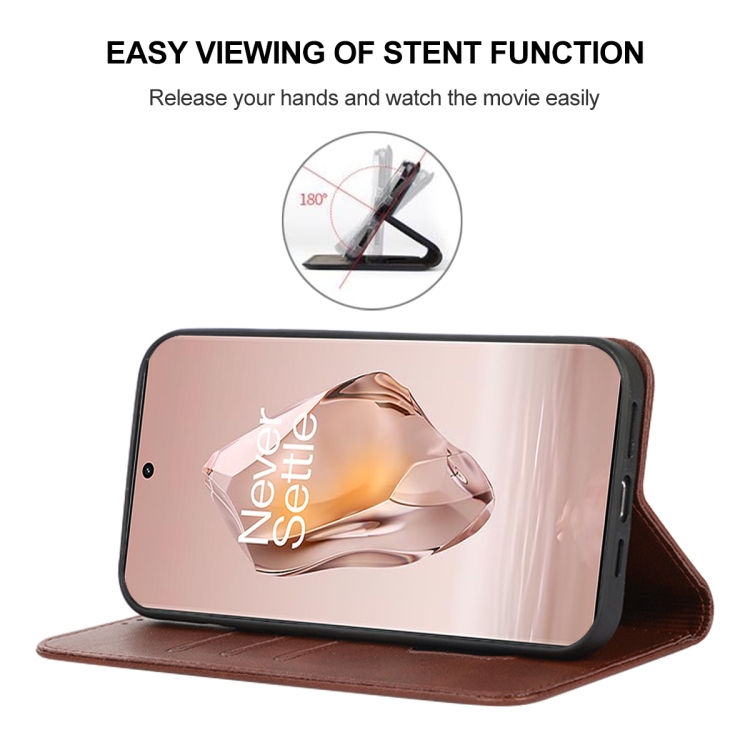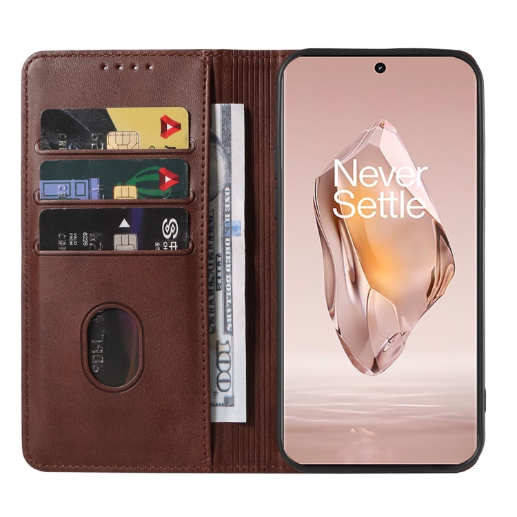 Funda de Cuero para OnePlus Ace 3/12R con Cierre Magnético (Marrón)