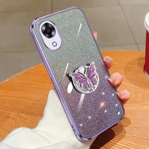 Para Oppo A17K Estuche para Teléfono de TPU con Soporte de Mariposa con Brillo Degradado Plateado (Púrpura)