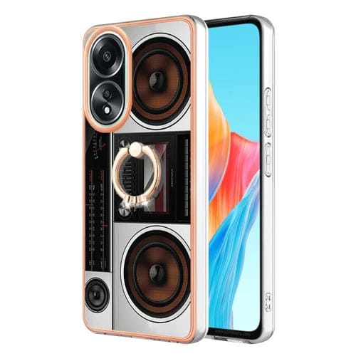 Para Oppo A58 4G Estuche para Teléfono Imd de Doble Cara con Galvanoplastia y Soporte para Anillo (Radio Retro)