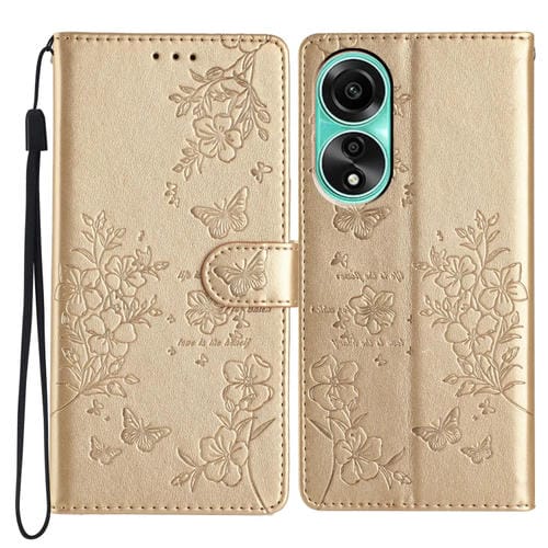 Para Oppo A78 4G Butterfly Love Flower Funda de Cuero para Teléfono En Relieve (Oro)