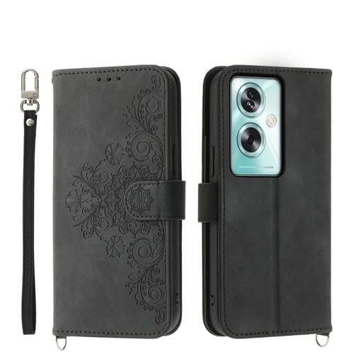Para Oppo A79 5G Funda de Cuero para Teléfono con Billetera En Relieve y Flores con Sensación de Piel (Negro)