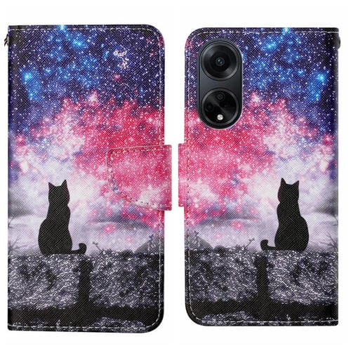 Para Oppo A98 Funda de Cuero para Teléfono con Patrón de Dibujo de Colores (Star Sky Cat)