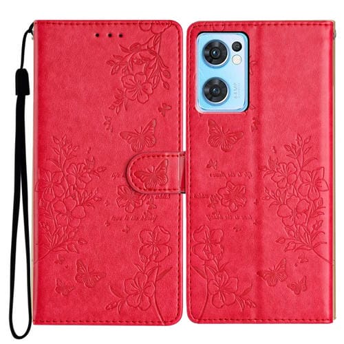Para Oppo Find X5 Lite Funda para Teléfono de Cuero con Relieve de Flor de Amor y Mariposa (Rojo)