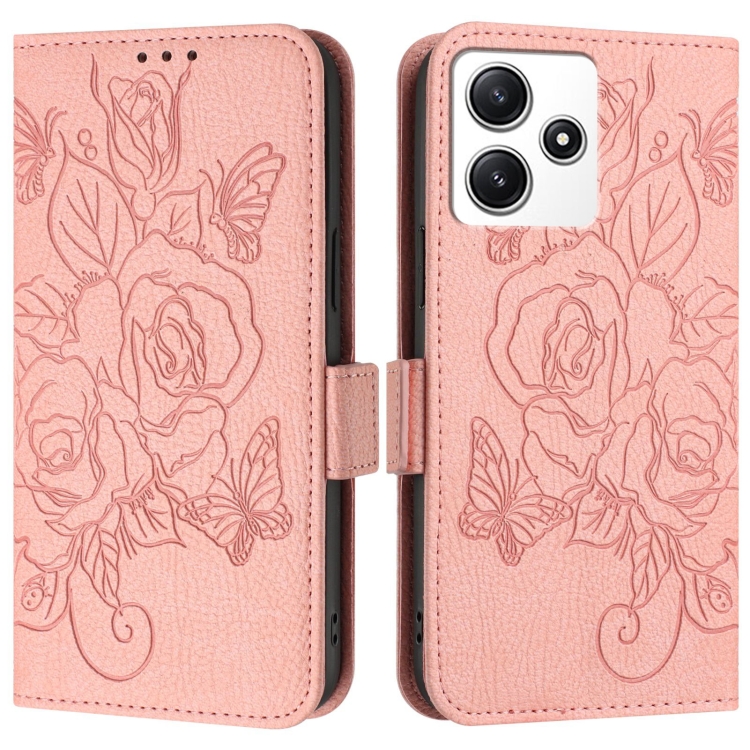 Para Redmi 12 5G / 4G Global / Note 12R Funda de Teléfono de Cuero Antirrobo Rfid con Relieve Rosa (Rosa)