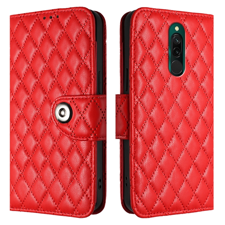 Para Redmi 8 Funda de Cuero con Tapa con Textura Romboidal y Cordón (Rojo)